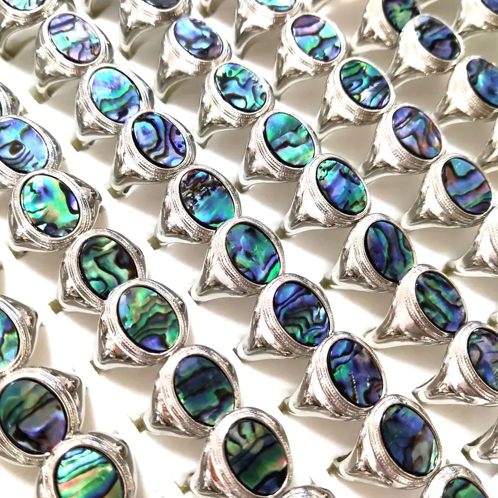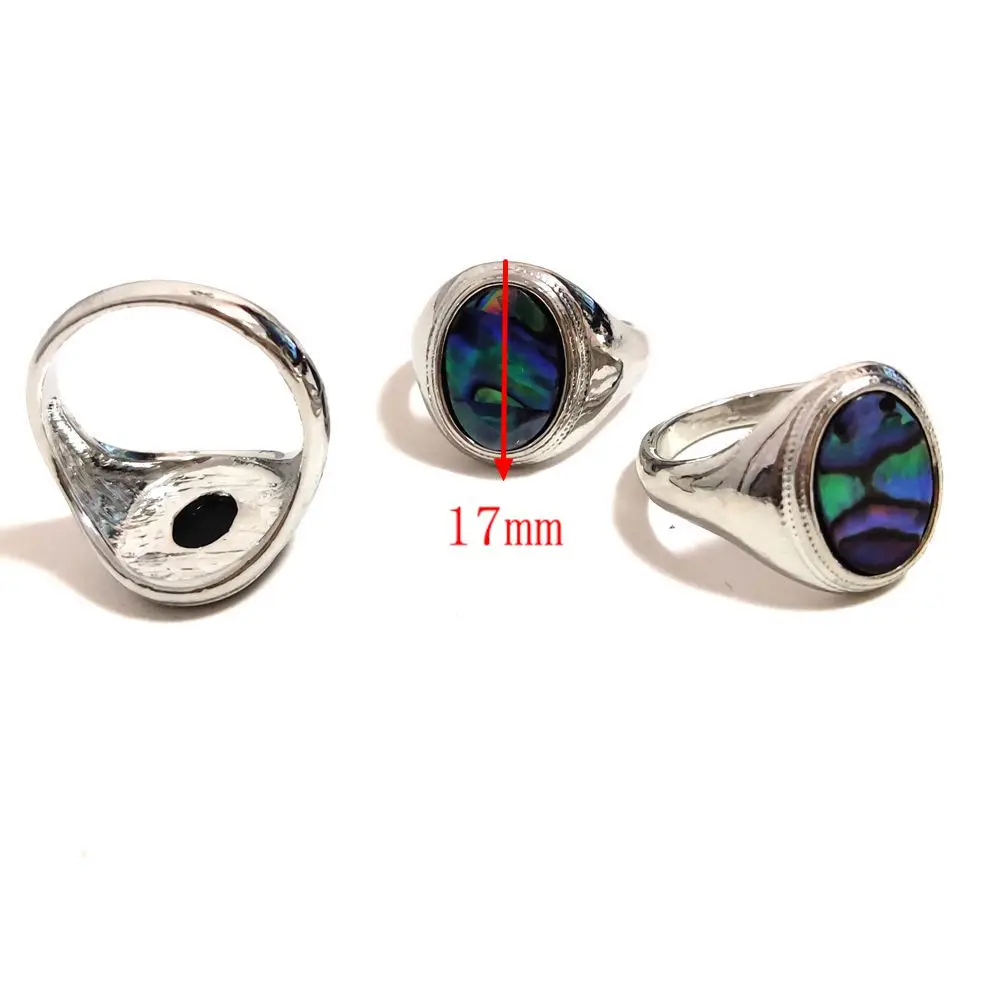 Os Anéis Abalone em Metal unem estilo vintage e elegância natural. Produzidos em liga metálica resistente, apresentam um belo detalhe de madrepérola Abalone em formato oval, que reflete tons iridescentes únicos.