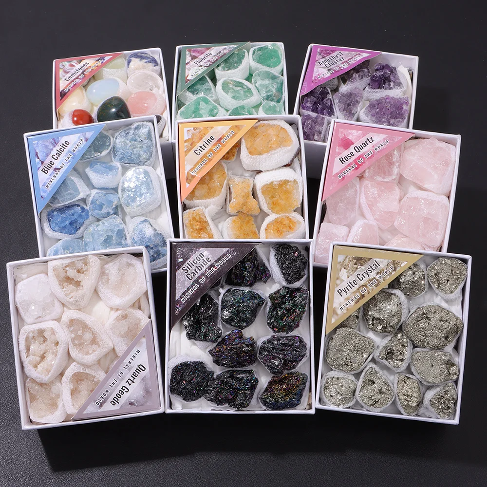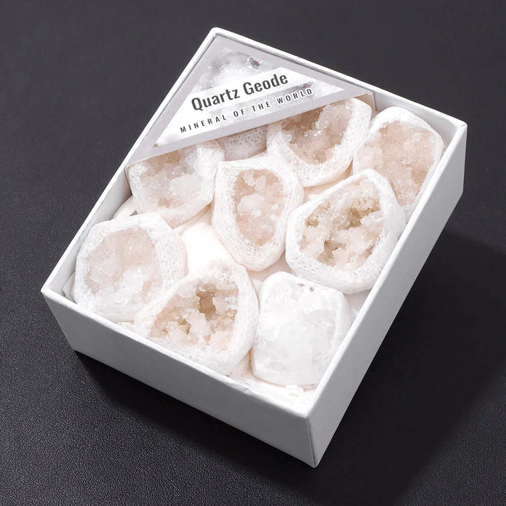 Este Conjunto Premium de Geodos e Minerais Naturais é perfeito para colecionadores, entusiastas de cristais, terapeutas holísticos e amantes da natureza. A caixa contém uma seleção de pedras e minerais cuidadosamente escolhidos por sua beleza, qualidade e propriedades energéticas.