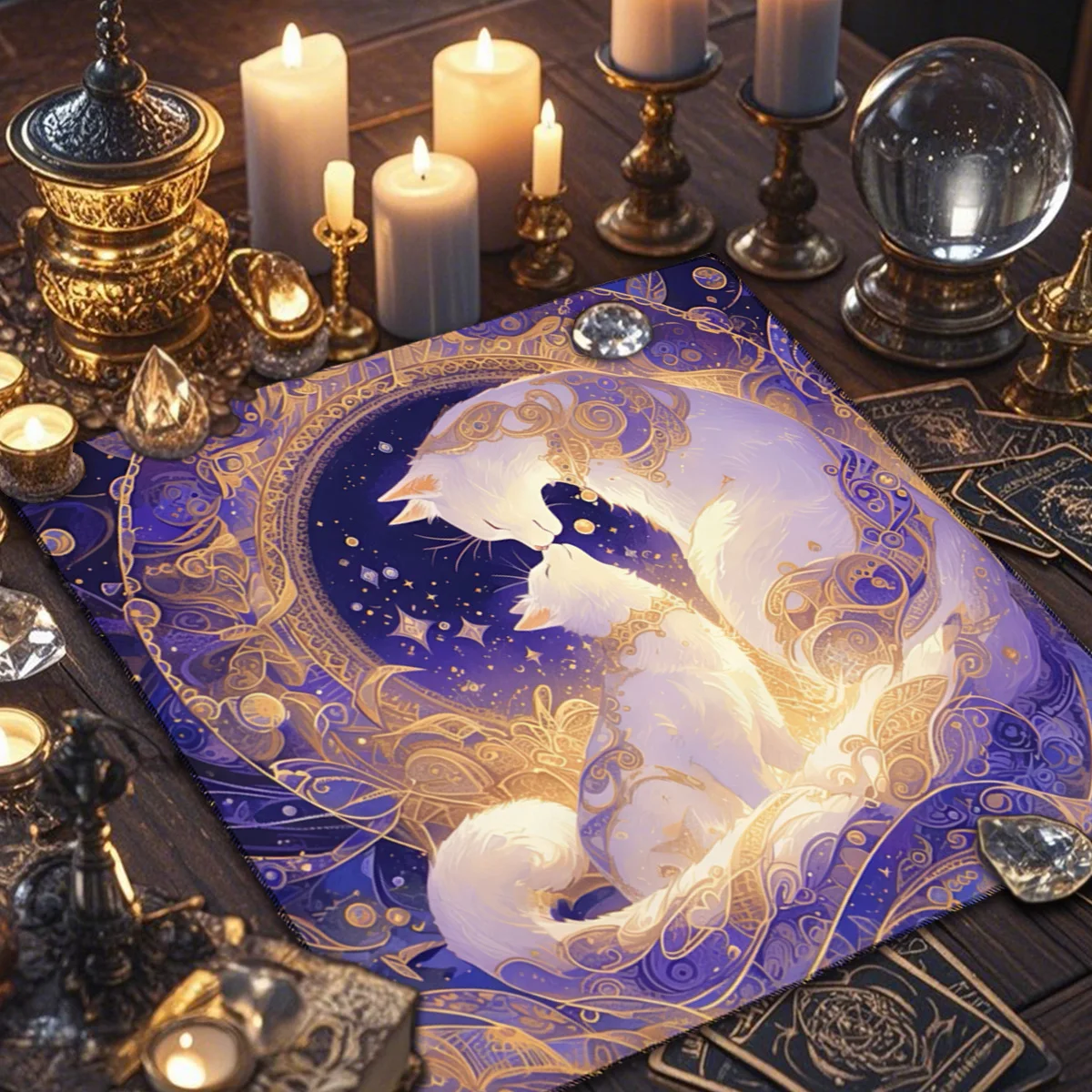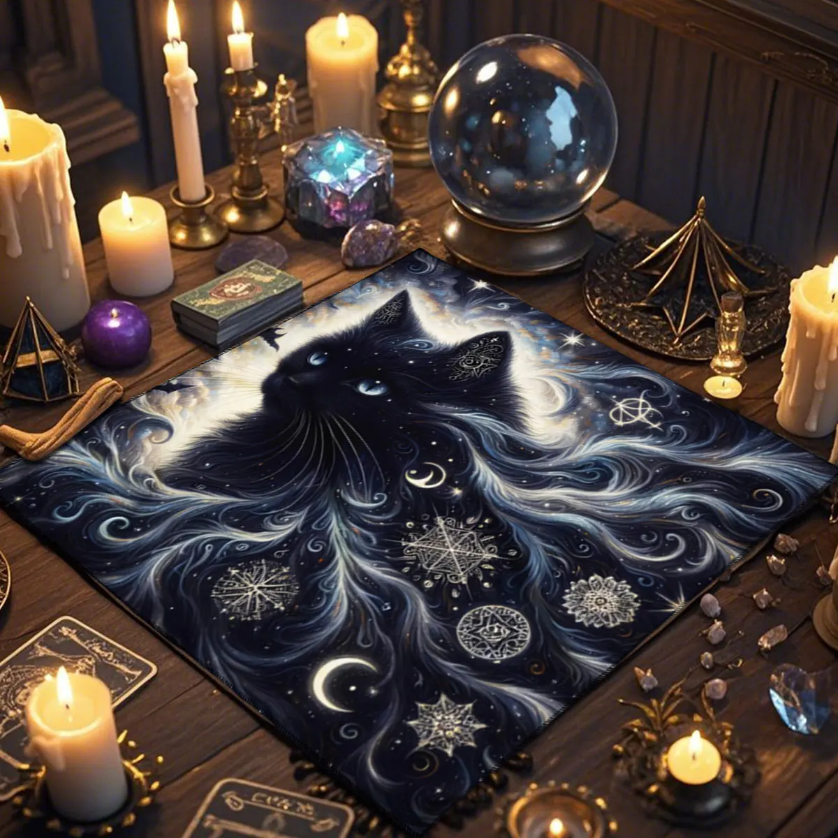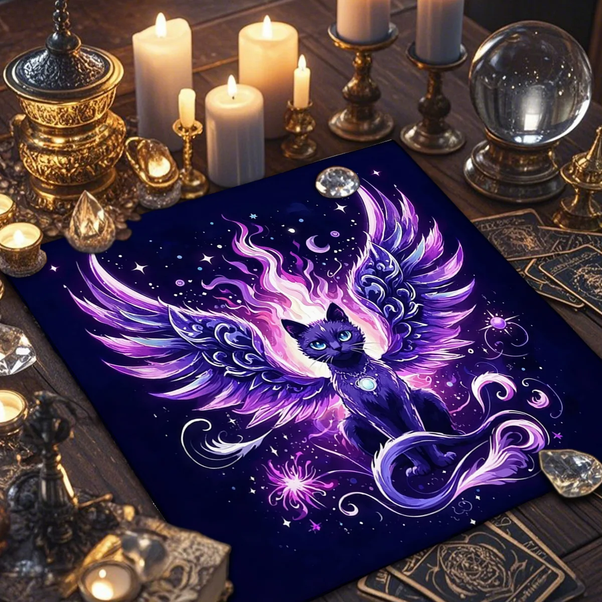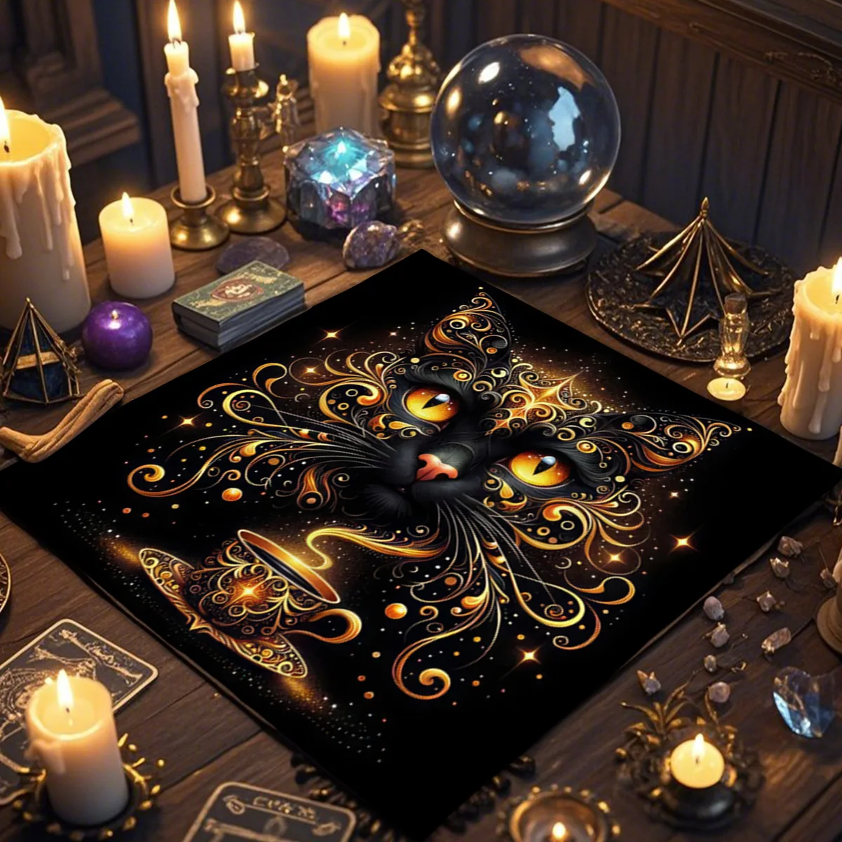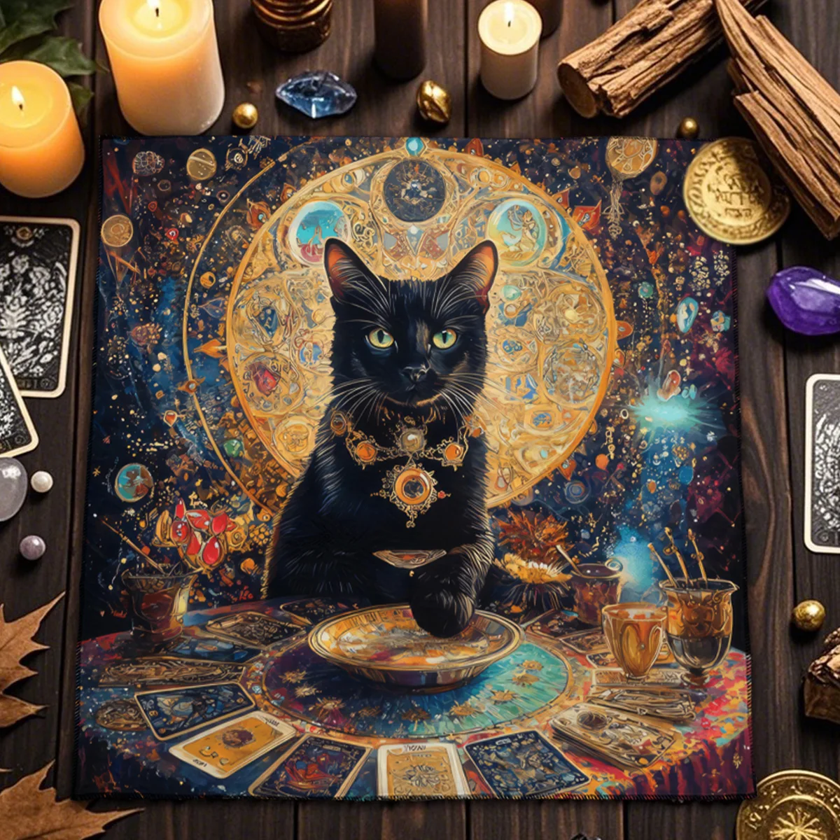 A Toalha de Altar para Tarô – Gato Civeta é um acessório indispensável para quem busca um ambiente harmonioso e cheio de energia para leituras de cartas, práticas espirituais ou decoração mística. Com estampa de inspiração esotérica e impressão digital de alta qualidade, esta toalha transforma qualquer espaço em um verdadeiro altar de adivinhação.