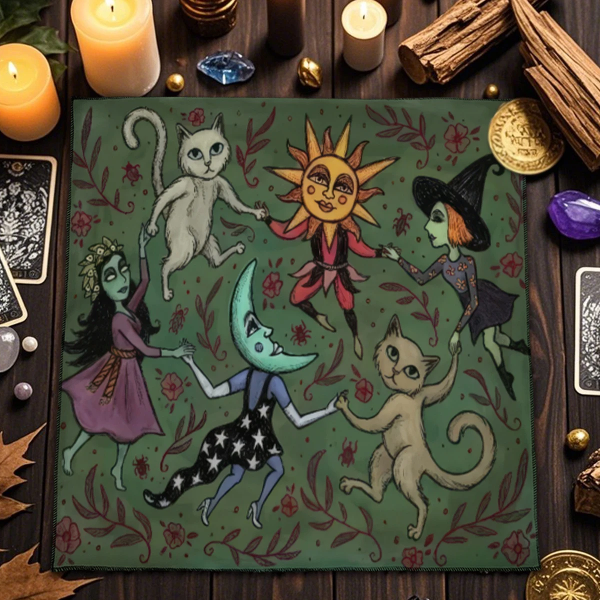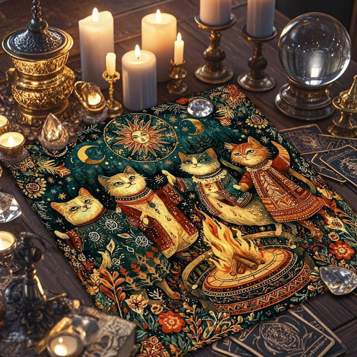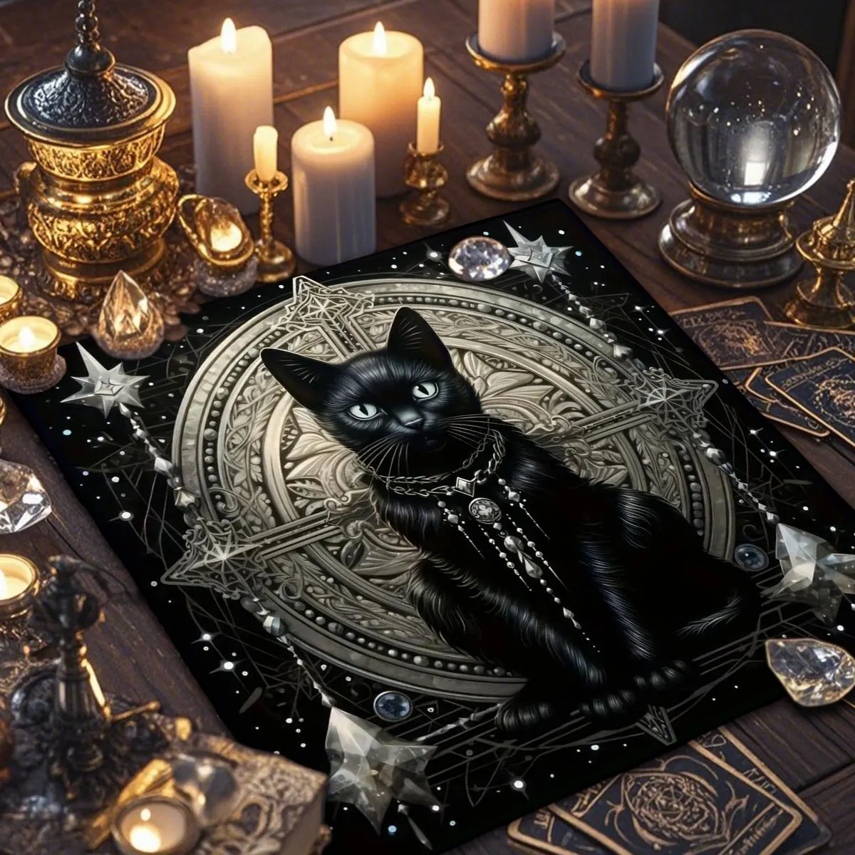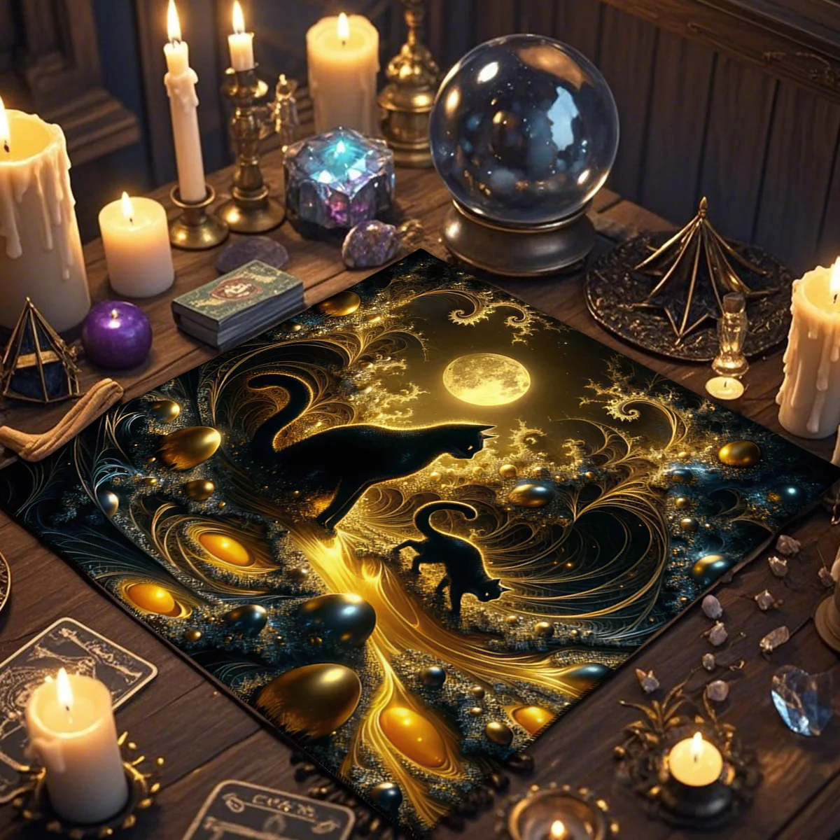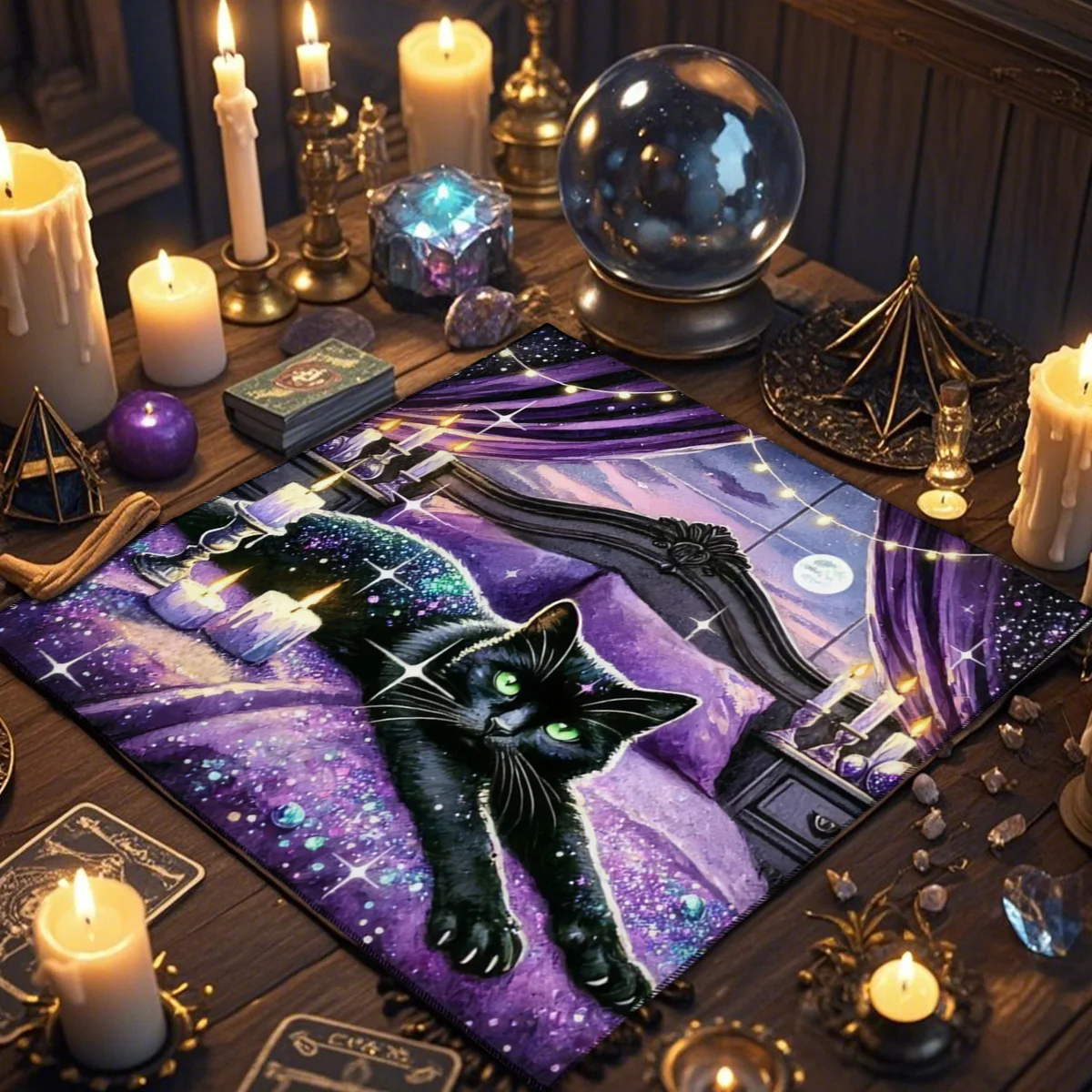 A Toalha de Altar para Tarô – Gato Civeta é um acessório indispensável para quem busca um ambiente harmonioso e cheio de energia para leituras de cartas, práticas espirituais ou decoração mística. Com estampa de inspiração esotérica e impressão digital de alta qualidade, esta toalha transforma qualquer espaço em um verdadeiro altar de adivinhação.